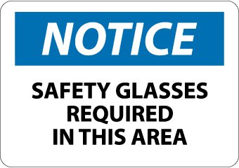 - NOTICE, SAFETY GLASSES REQUIRED IN THIS AREA, 7X10, .040 ALUM