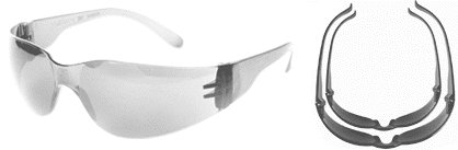 The RL-2 hands free LED light clips on the temples of most safety glasses and hard hats. The 360 degree rotating clip allows for easy beam adjustment while attached to either right or left side. This product comes with the 2 lights only and does not include the safety glasses shown in the picture.